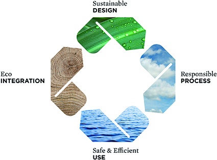 The four steps are: sustainable design, responsible process, safe and efficient use, and eco-integration.